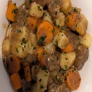 Cranberry-Glazed Meatballs with Creamy Mashed Potatoes & Buttered Peas